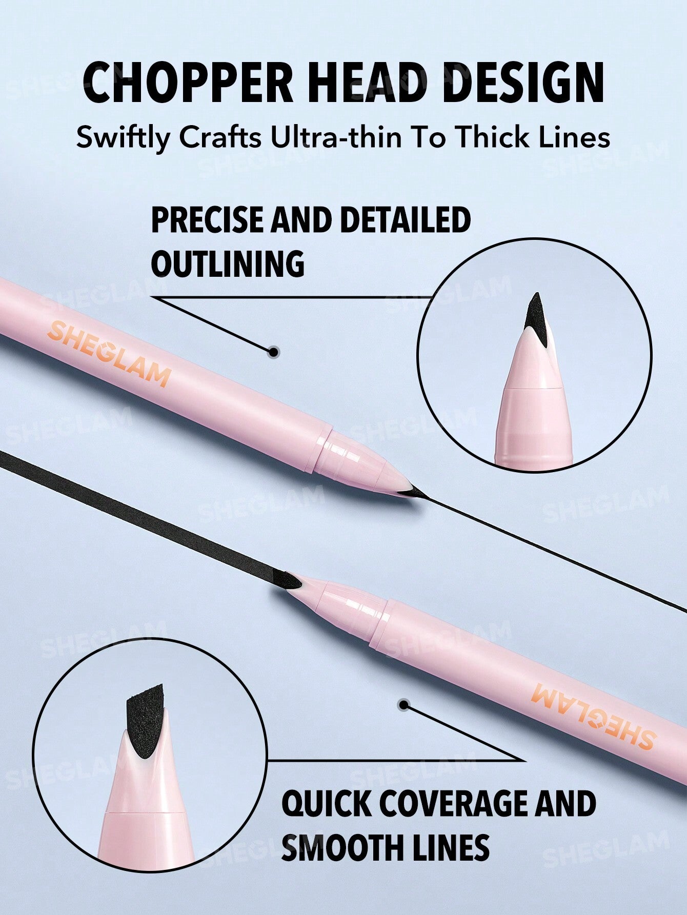 ¡Conseguir un delineado alado más limpio y definido nunca fue tan fácil! Nuestro delineador líquido Think Sharp cuenta con un innovador y creativo diseño de cabezal de corte que crea líneas ultrafinas y ultragruesas en un instante.